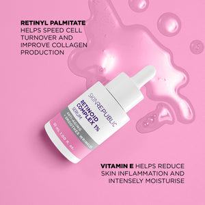 Velvety serum infused with 1% retinoid complex in squalene helps reduce the visible signs of ageing. Use on its own as a daily treatment or to boost the results of a Skin Republic Face Mask.