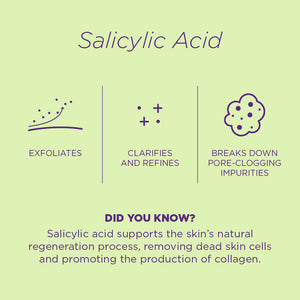This multifunctional ingredient addresses many of the systemic causes of acne. For decades, dermatologists have been prescribing salicylic acid as a gentle exfoliant and anti-inflammatory. Salicylic acid’s antimicrobial properties make it extremely effective at treating breakouts. It can penetrate into the pore lining and exfoliate inside the pore as well as on the surface of skin, which makes it effective for reducing breakouts, including blackheads and whiteheads. It is also well documented that salicylic acid can improve skin thickness, barrier function, and collagen production.