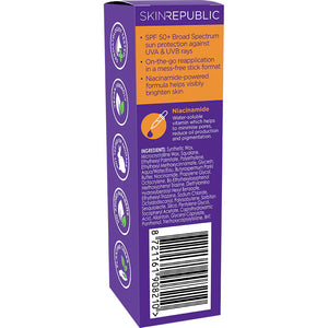 SPF 50+ sunscreen stick with niacinamide to protect and brighten. Perfect for on-the-go SPF reapplication.